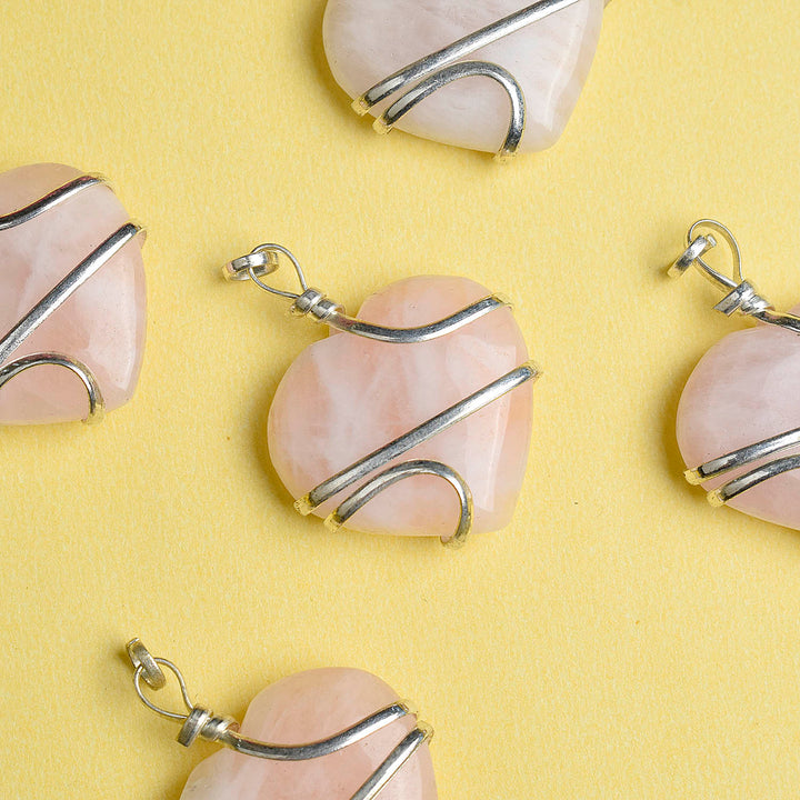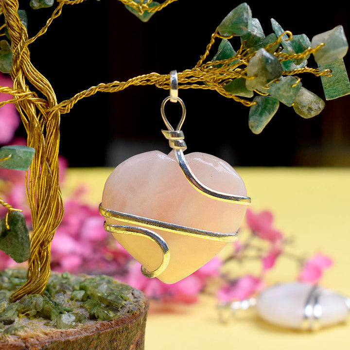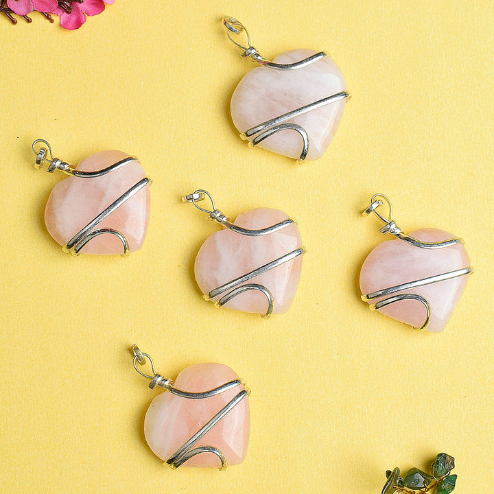 Rose Quartz Pendant Heart Wire Wrapped Crystal Stone Pendant | Satvik – satvikstore.in