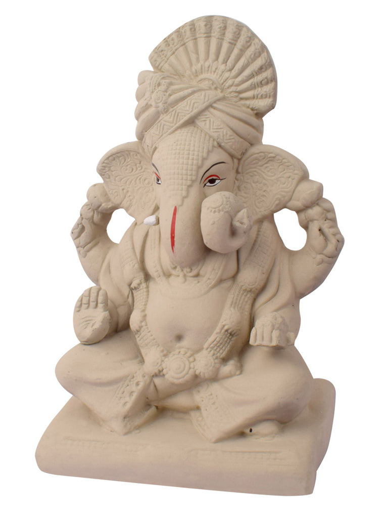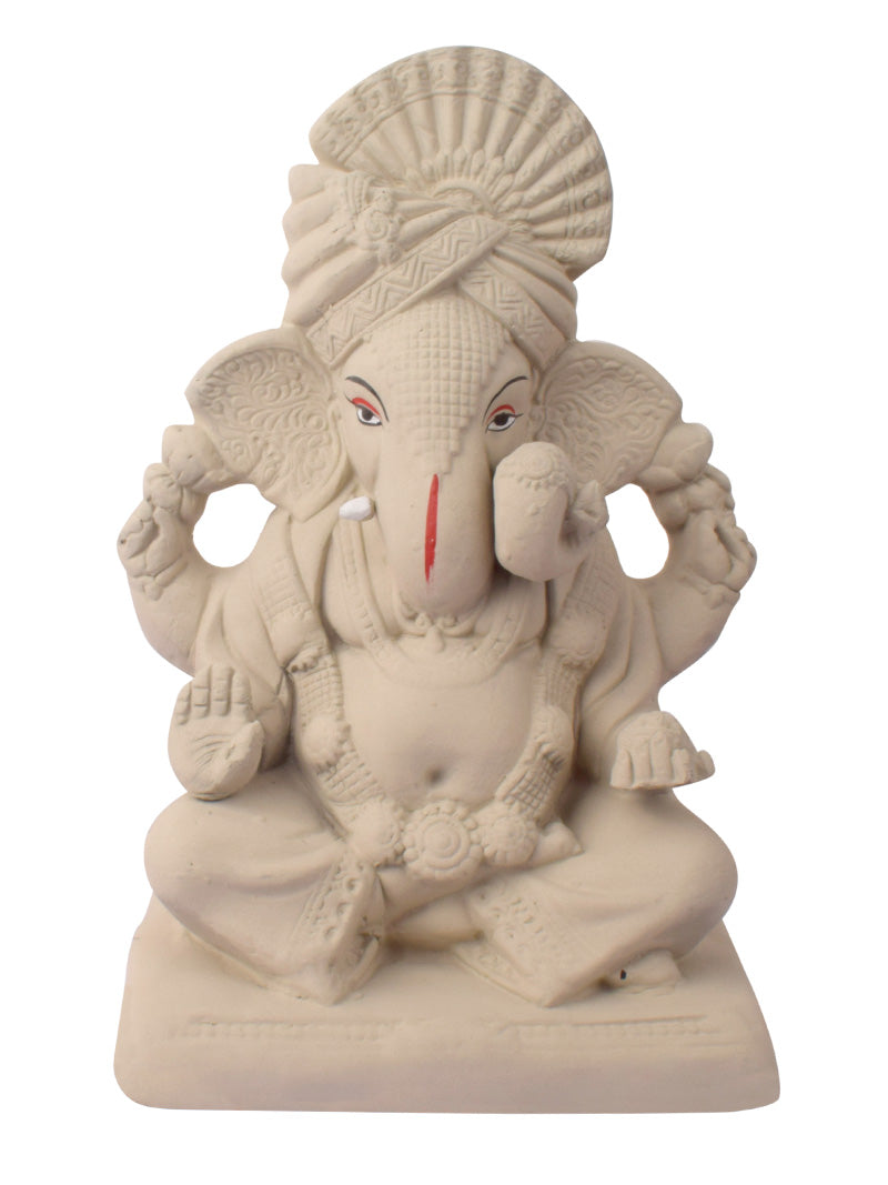 Eco Friendly Ganesha statues are made of 100% biodegradable and eco-friendly material by using Shadu Mati Clay Mitti, which dissolves easily in water. The colours used are also natural, and they decompose and dissolve in water easily. Although they have been made all across India, West Bengal and Maharashtra often employ skilled artisans to make them.