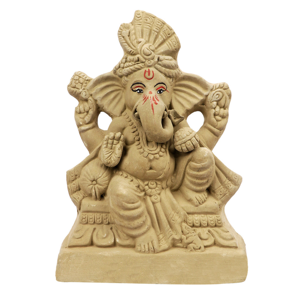Eco Friendly Ganesha statues are made of 100% biodegradable and eco-friendly material by using Shadu Mati Clay Mitti, which dissolves easily in water. The colours used are also natural, and they decompose and dissolve in water easily. Although they have been made all across India, West Bengal and Maharashtra often employ skilled artisans to make them.