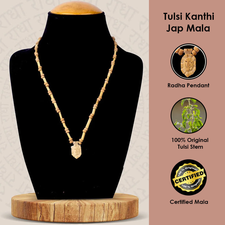 Tulsi Mala with Radha Pendant | Original Tulsi Mala with Divine Charm | Pure Tulsi Beads Necklace | Chanting Mala with Radha Locket | Tulsi Kanthi Mala with Pendant | Radha Tulsi Rosary for Worship |