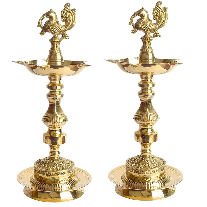 Buy 13 Inch 1 Step Embossed Peacock Kerala Stand Diya | Satvikstore.in – satvikstore.in