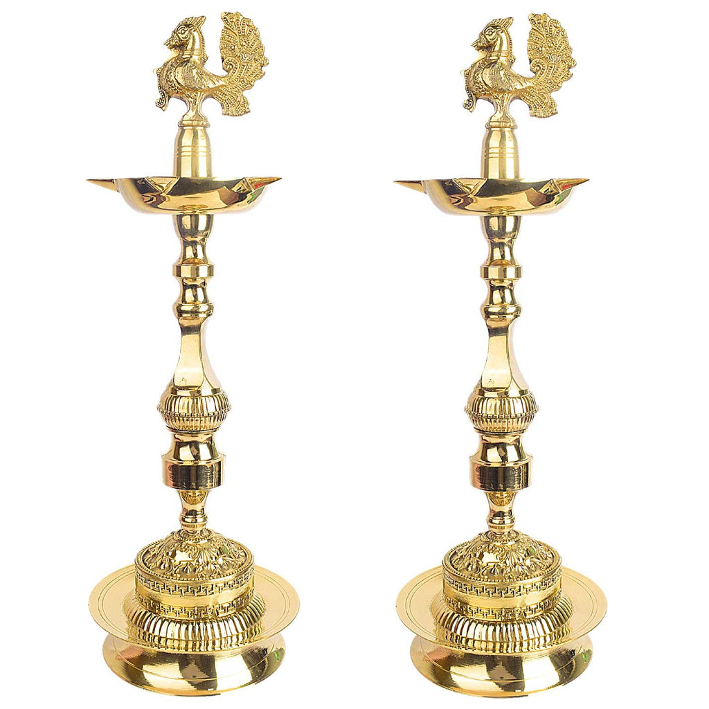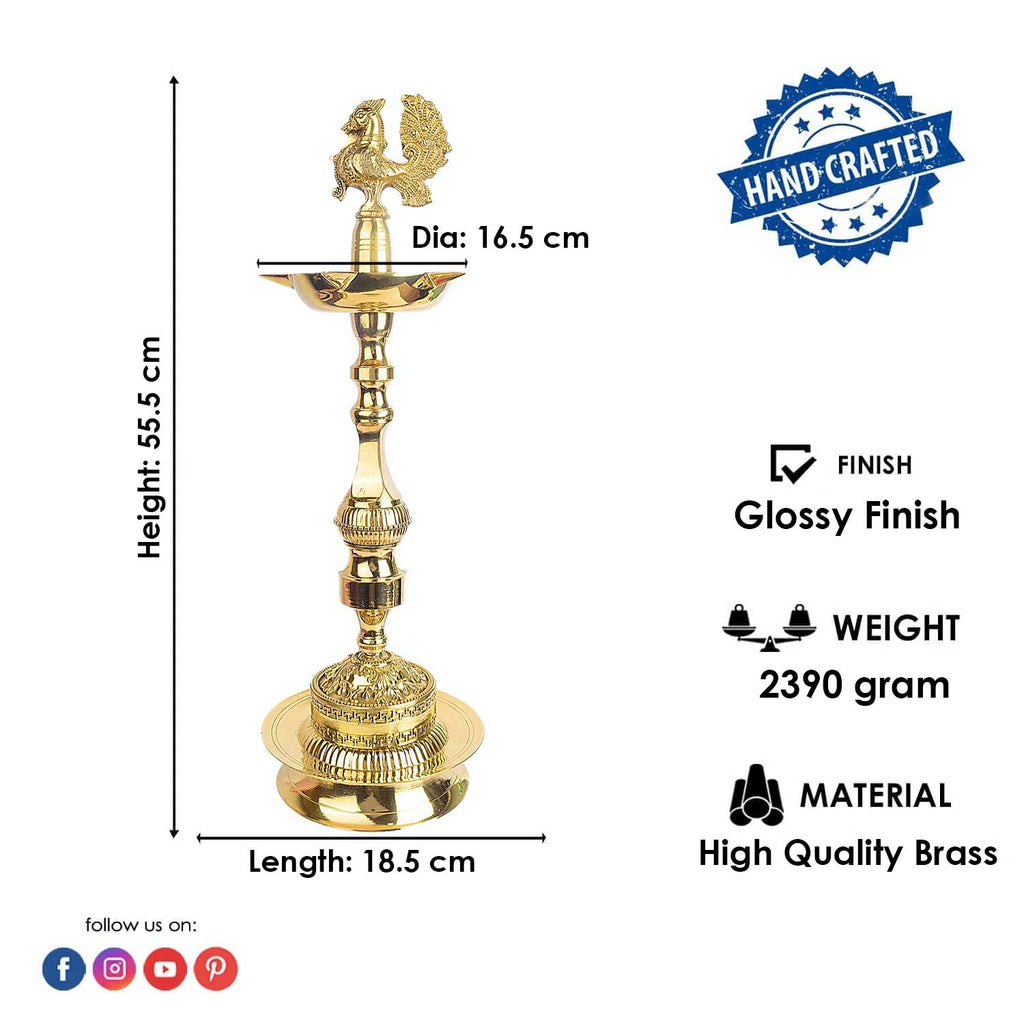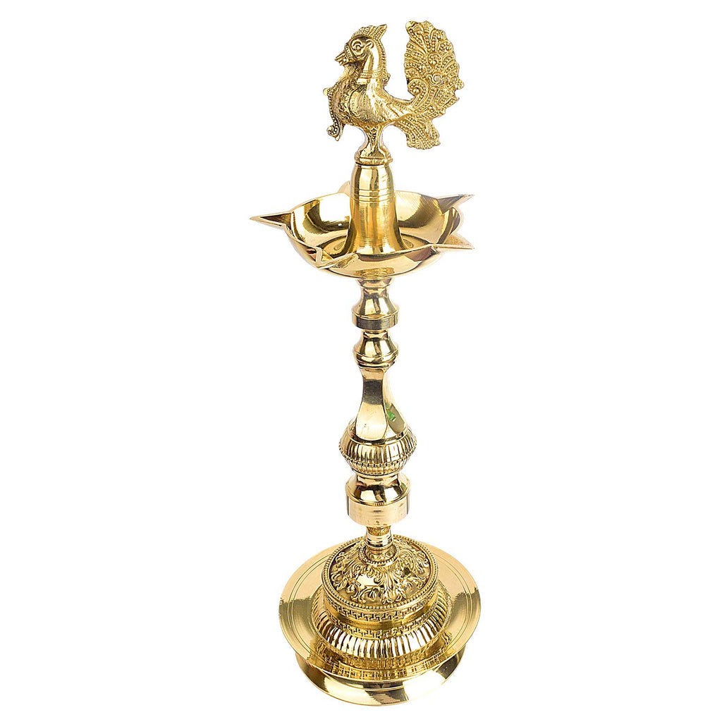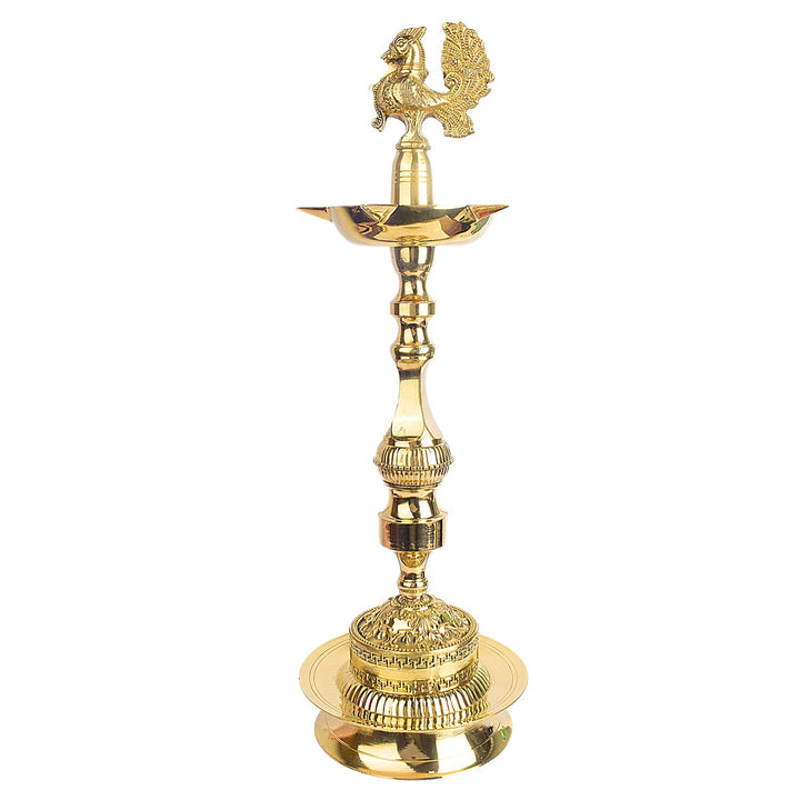 • Item Name: 21 Inch Brass Embossed Peacock Kerala Stand 1 Step Diya