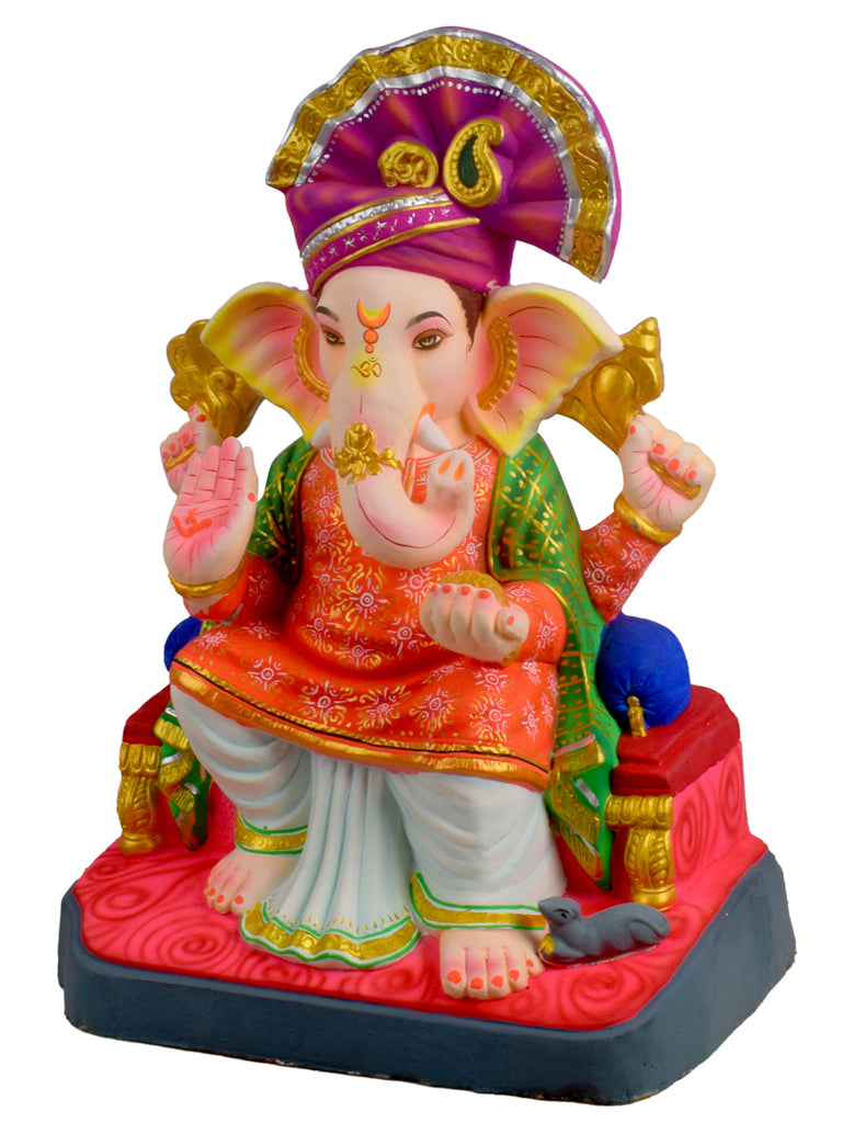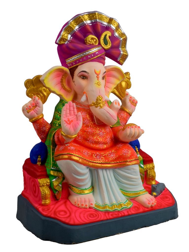 These True eco friendly Ganpati idols are also available in multi-colour options in red, white, yellow, green, white, pink, purple, blue, orange, gold, and other vibrant colours at the best price compared to the market online and come in beautiful packaging to gift to your relatives and friends. Eco Friendly Ganesha Idols are available in the Latest and Designer Collection of 2024 with Pagdi Ganesha, Mukut Ganpati, Ganeha Sitting in Chair Singashan, Bal Ganesha, Standing Ganesha, Lal Bagh ka Raja Ganpati Murti, Lalbaugcha Raja Ganesha Idol, and Many More.