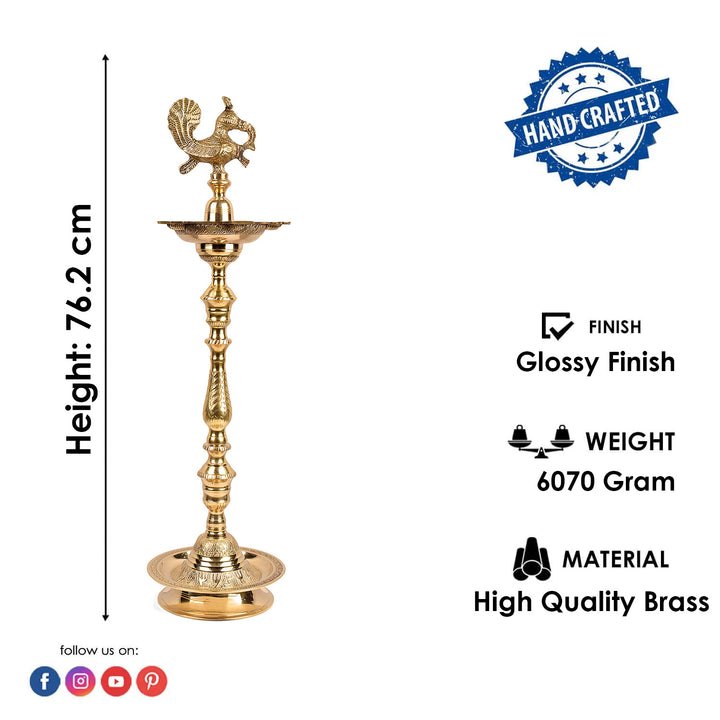 • Item Name: Brass Kerala Peacock Samai Deepam Inauguration Lamp 32 Inch