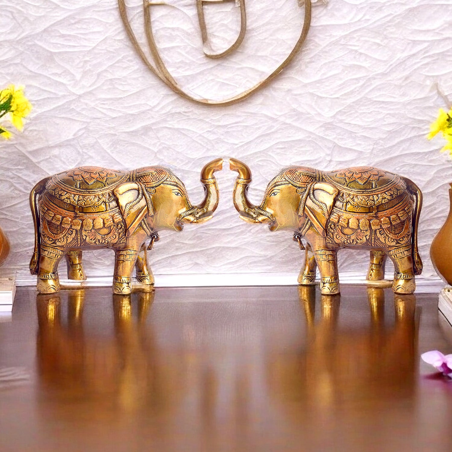 About the Product: This exquisite brass elephant statue, featuring a pair of Thai elephants with their trunks up, is a perfect addition to your home or office. In Feng Shui, elephants symbolize power, wisdom, strength, and protection. Their presence is believed to bring good karma, prosperity, and security. The raised trunks of these elephants represent good luck, success, and vitality.