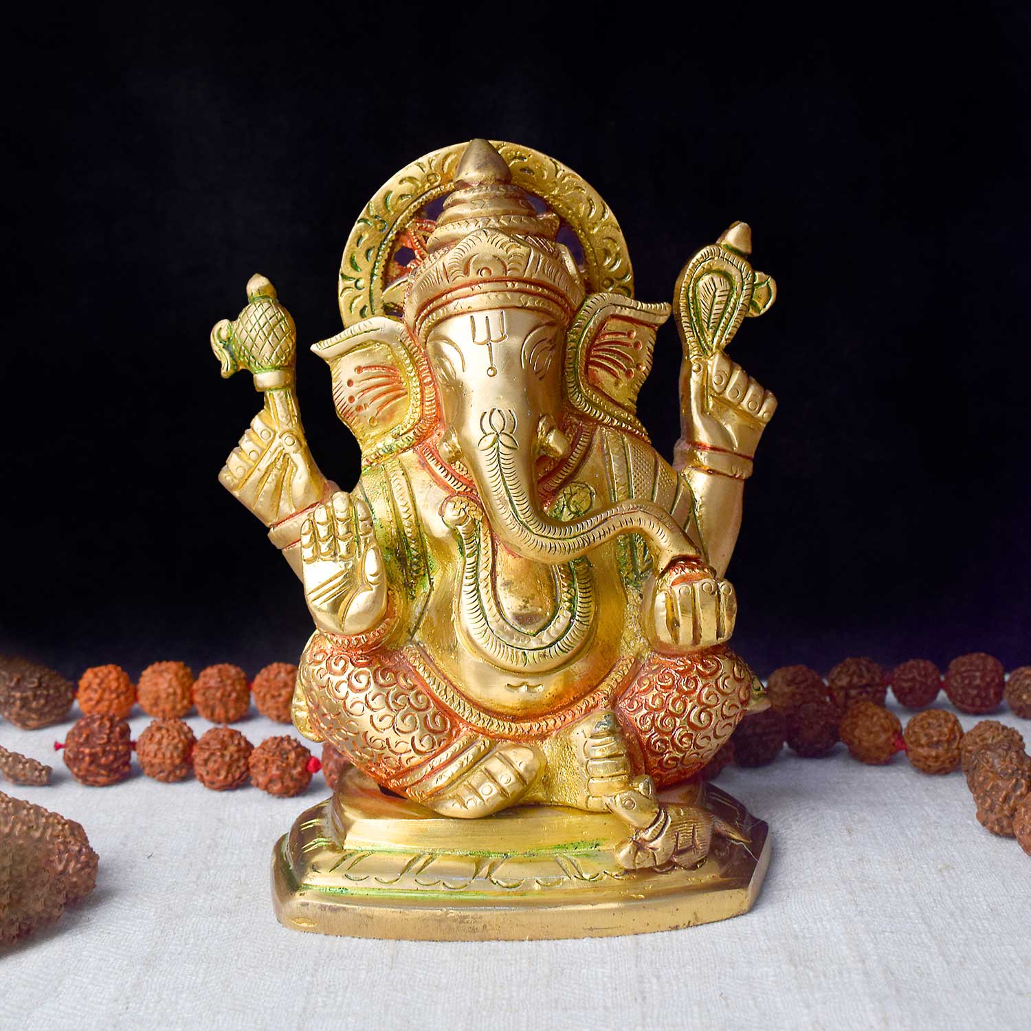 • About the Product: 5.4 Inch Multicolor Brass Lord Ganesha Idol for Home Mandir