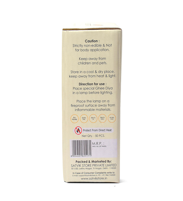 • Material: Ready-to-use Ghee wick Batti are made from Cotton Flower Batti with Ghee material.