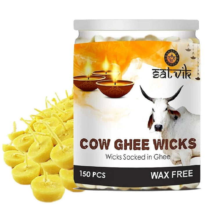 pure cow ghee diya wicks | wax free cow ghee batti | 50 pcs cow ghee diya batti | long lasting cow ghee wicks | eco-friendly cow ghee wicks | handmade cow ghee batti | cotton ghee wicks for pooja | ayurvedic cow ghee wicks | spiritual cow ghee diya | satvikstore cow ghee wicks