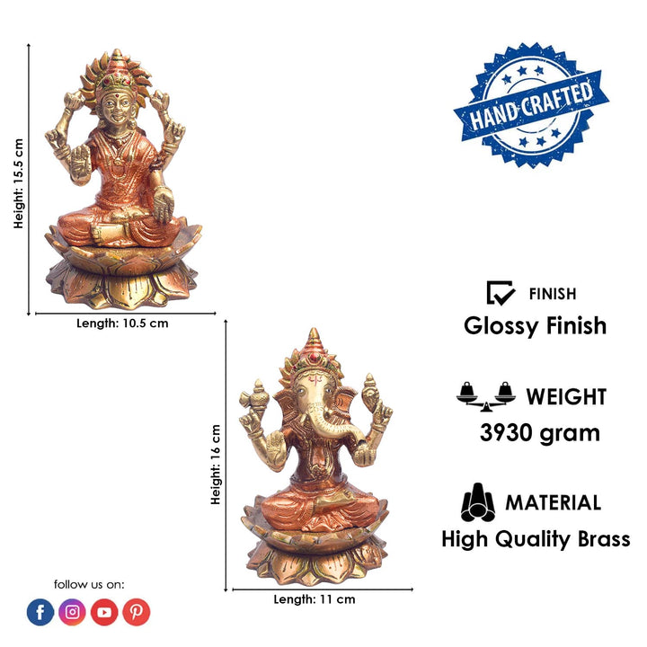 • Item Name: 6.1 Inch Elegant Brass Lakshmi Ganesh Idol
