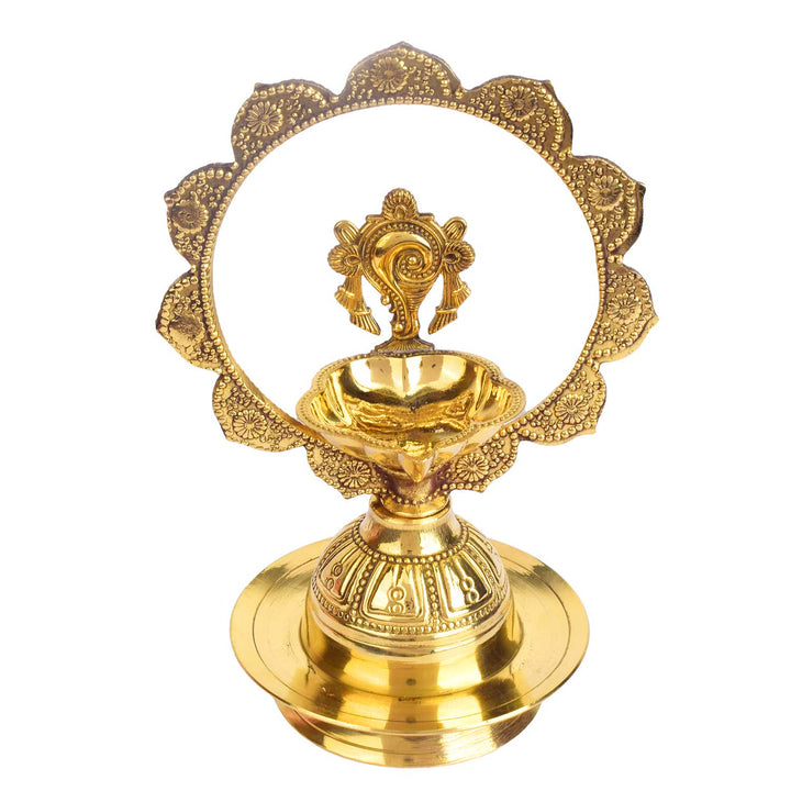 Buy 7.5 Inch Embossed Shankh Morkiran Brass Diya | Satvikstore.in – satvikstore.in