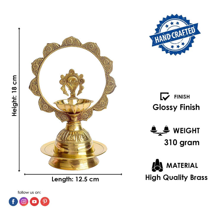 • Item Name: 7.5 Inch Embossed Shankh Morkiran Brass Diya