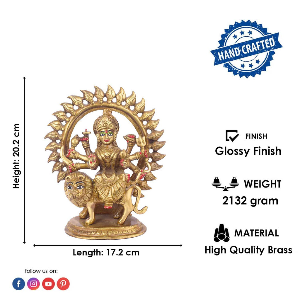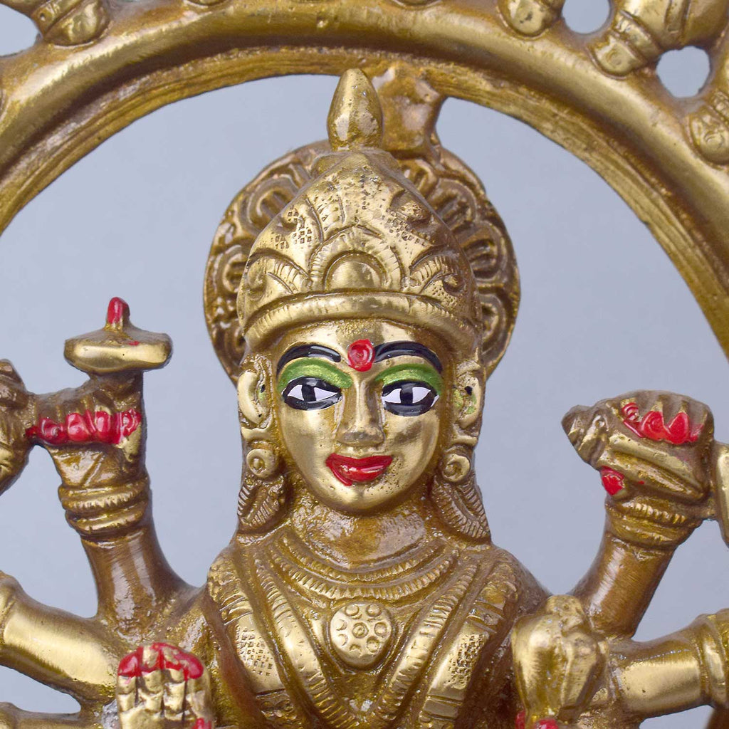Sherawali Mata in Round frame | Brass Sherawali Mata Idol | Brass Sherawali statue | Handmade Brass Sherawali Mata Statue | Brass Durga Mata Idol | Puja Room Decor | Brass Idol | Exclusive Brass Idol |Β