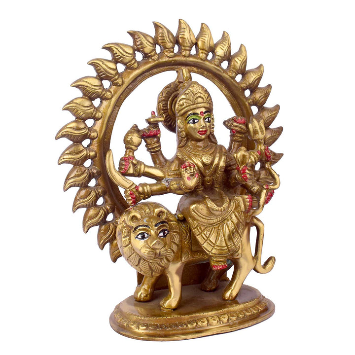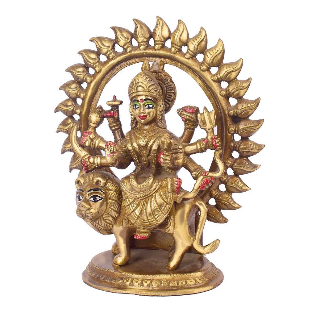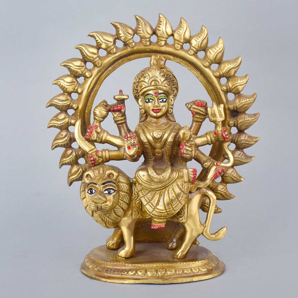 Buy Online Brass Sherawali Mata Idol in Round Frame | Satvikstore.in – satvikstore.in