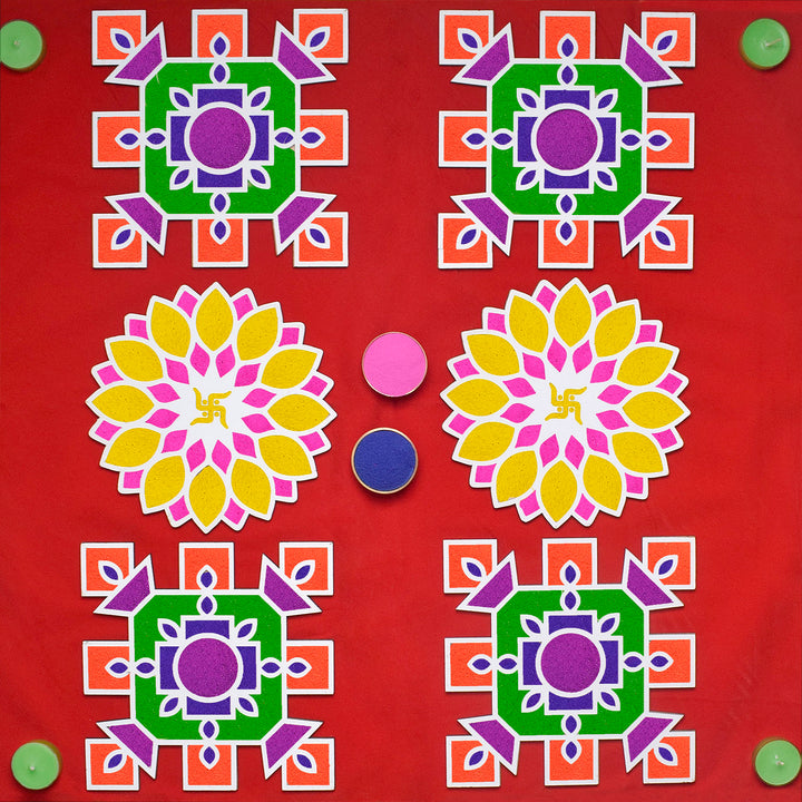 • Easy to Use: Even if you're new to rangoli-making, our kit comes with step-by-step instructions that simplify the process, so you can achieve professional-looking results. Pooja Essential: Create a harmonious atmosphere for your Diwali puja with our rangoli set, adding an artistic touch to your sacred space.