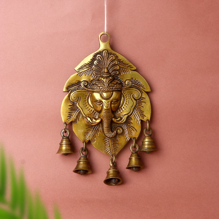 9 Inch Brass Decorative Ganesh Wall Hanging (Leaf Shape)