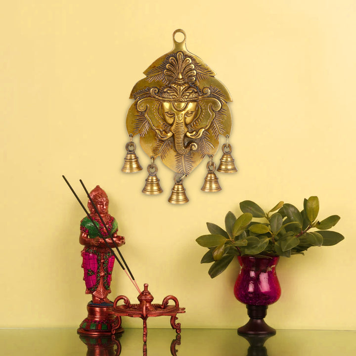 • Item Name: 9 Inch Pure Brass Wall Hanging Ganesh Leaf Shape Statue