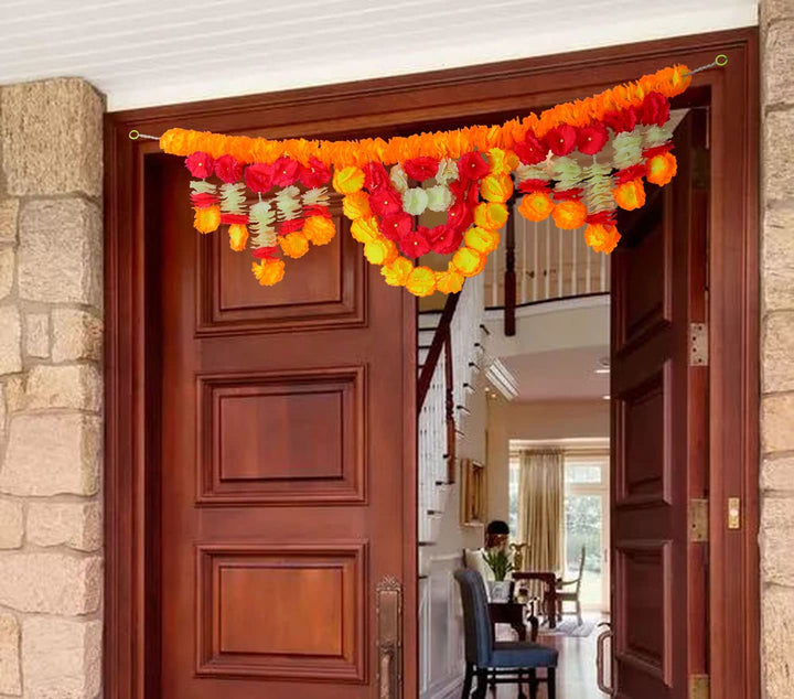 Artificial Flower Bandarwal | Floral Toran | Door Decoration | Home Entrance Decor | Festive Door Hanging | Artificial Floral Garland | Traditional Indian Decor |  Colorful Door Ornament |