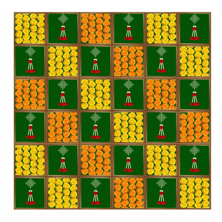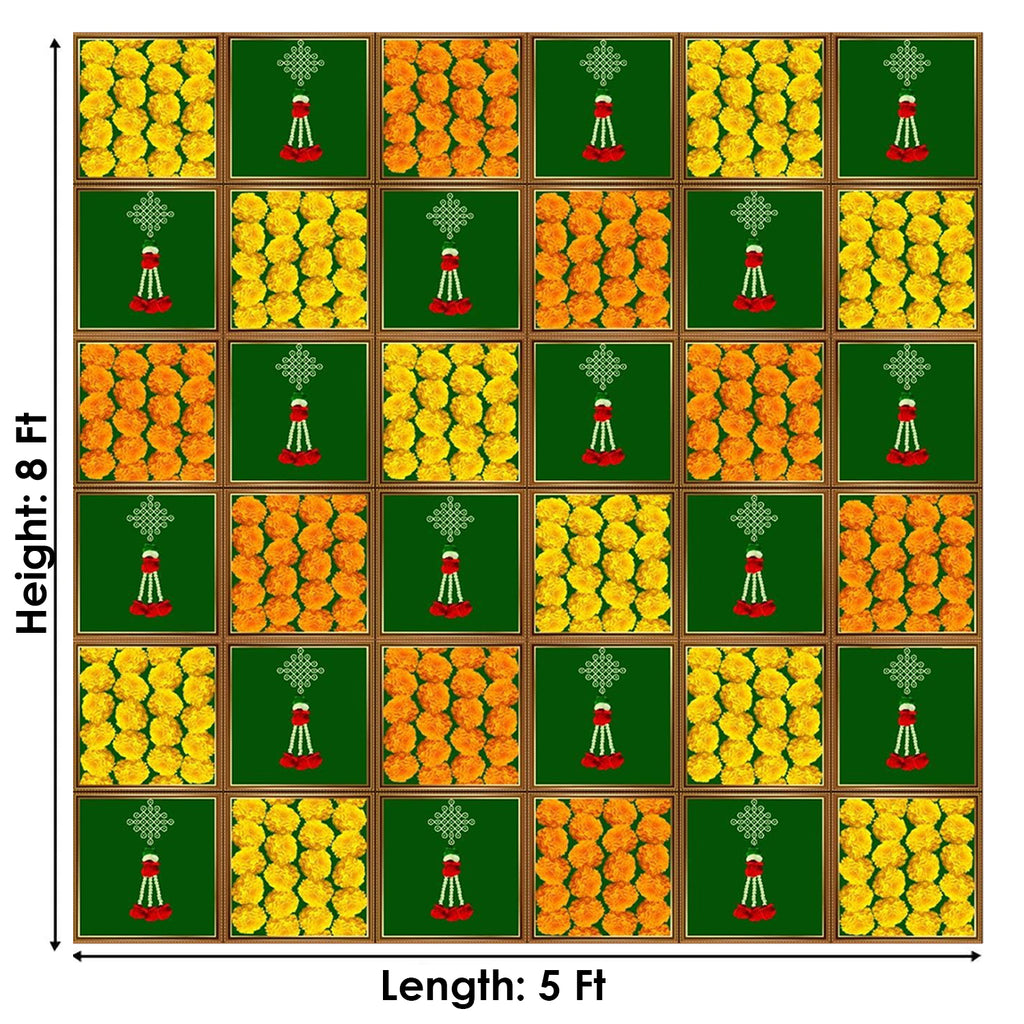 Genda phool backdrop cloth | Printed marigold flower cloth | Pooja backdrop decoration | Floral print pooja cloth | Temple decoration fabric | Festive mandir backdrop | Indian celebration decor | Marigold print backdrop |Β