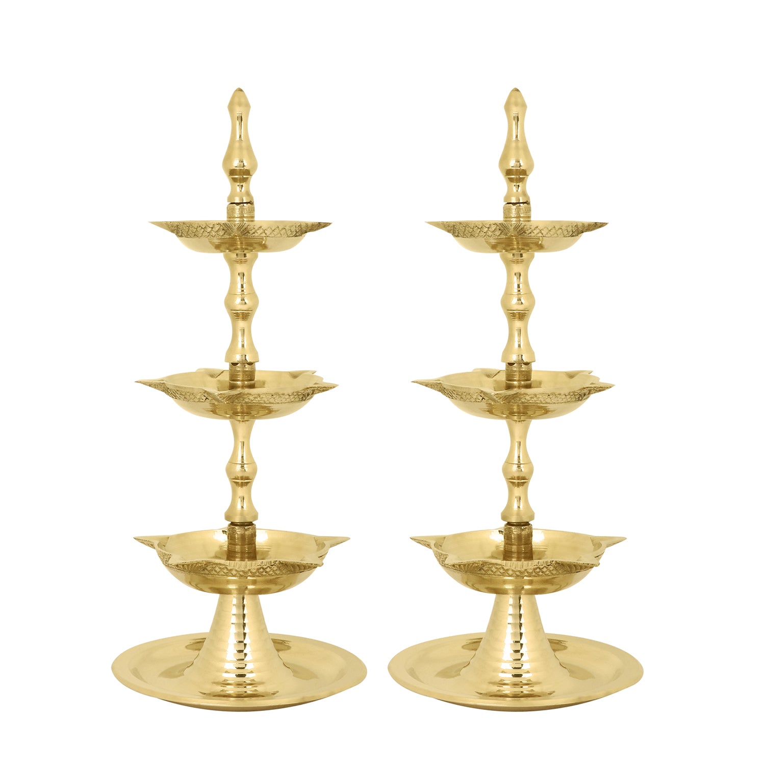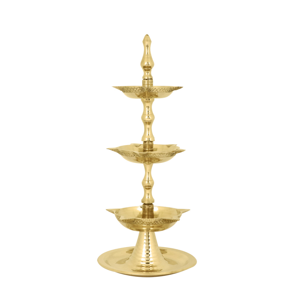 Brass 3 Step Diya | Kerala Samai Deepam | Brass Inauguration Lamp | Traditional Pooja Diya | Kerala Style Brass Diya | Brass Deepam for Pooja | Indian Ritual Brass Lamp | South Indian Temple Lamp | Brass Pooja Accessories | Brass Oil Lamp | Satvikstore Brass Diya | Handcrafted Brass Pooja Diya