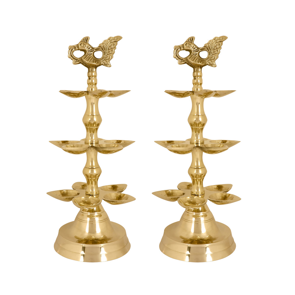 • Item Name:Β 3-Step Panchmukhi Peacock Kerala Diya