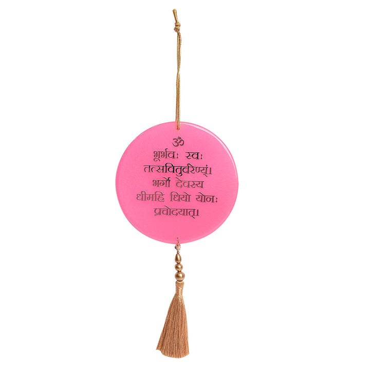 Decorative Epoxy/Resin Gayatri Mantra Pink Frame Car/Wall Hanging