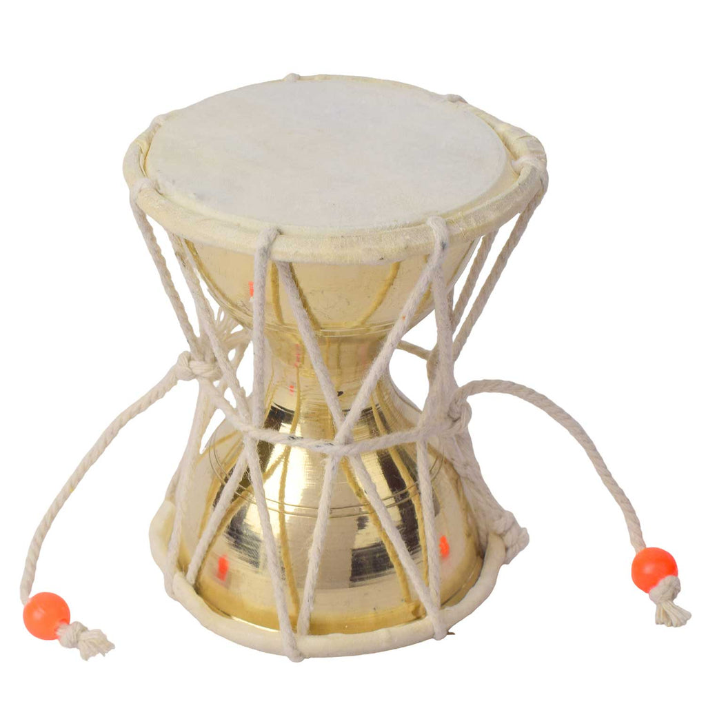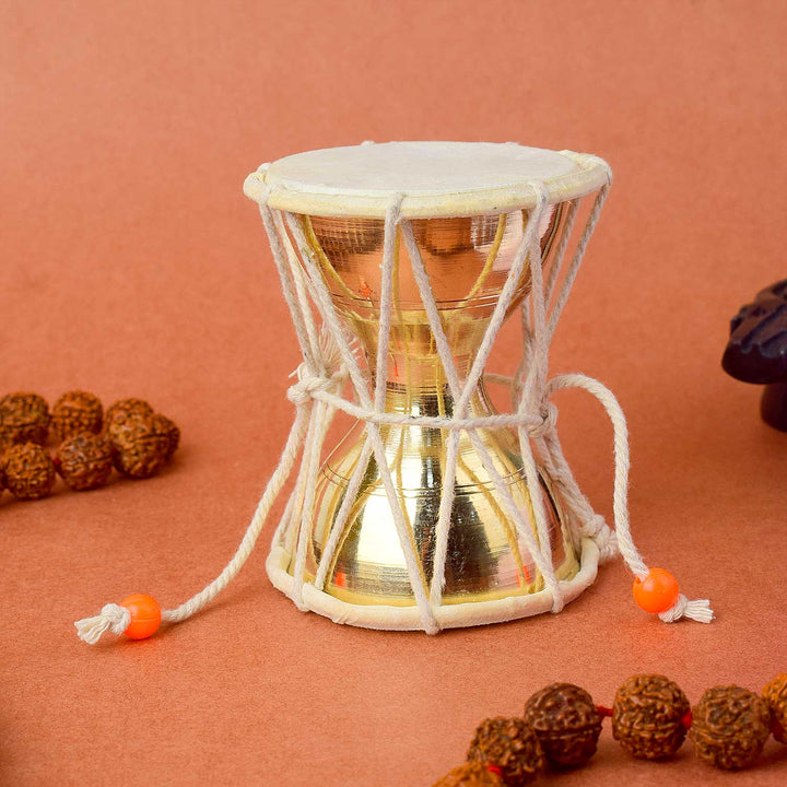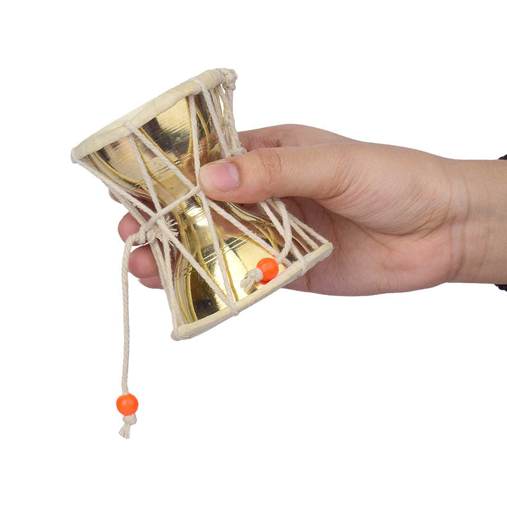 divine brass damru | brass damru for pooja | 4 inch pooja damru | compact damru for temple | damru for lord shiva | spiritual damru instrument | meditation damru | brass damaru | shiva damru for aarti | pooja accessories india