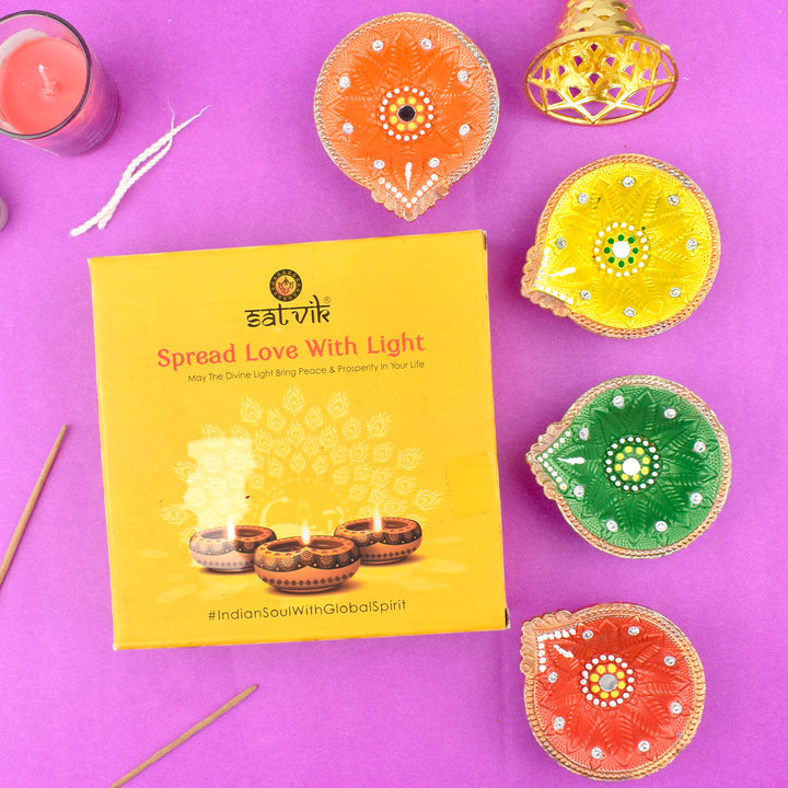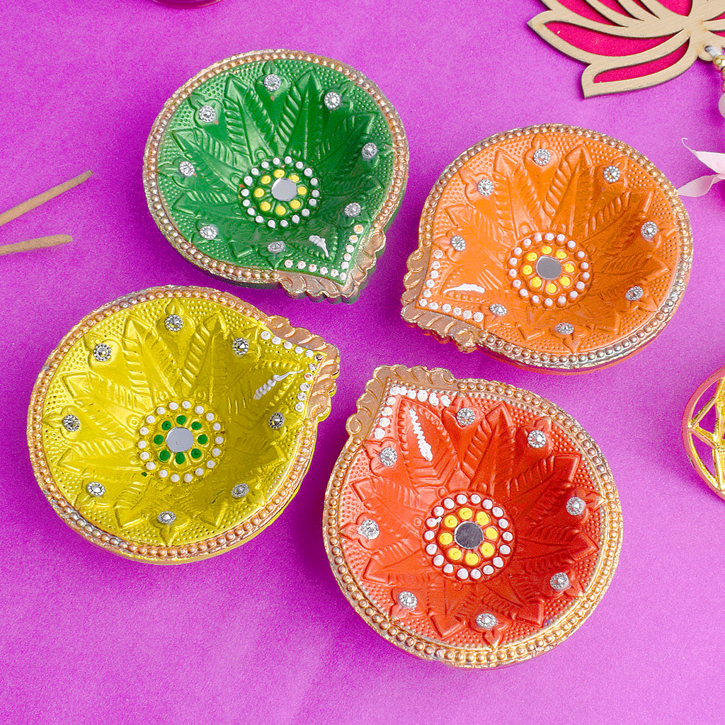 Diwali Dazzle Handcrafted Clay Diyas to Illuminate Your Home Set of 4