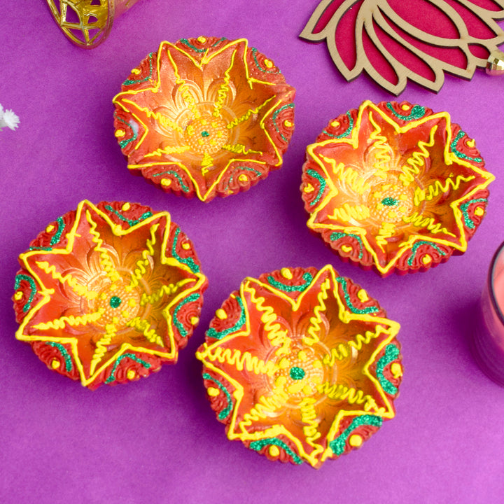 Glow of Tradition Handcrafted Clay Diyas Set of 4