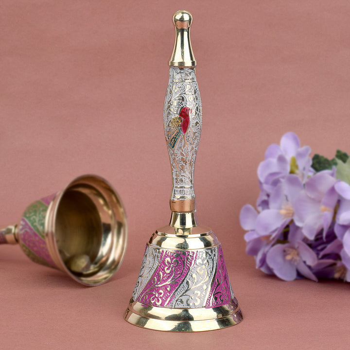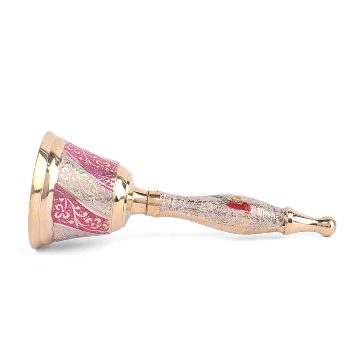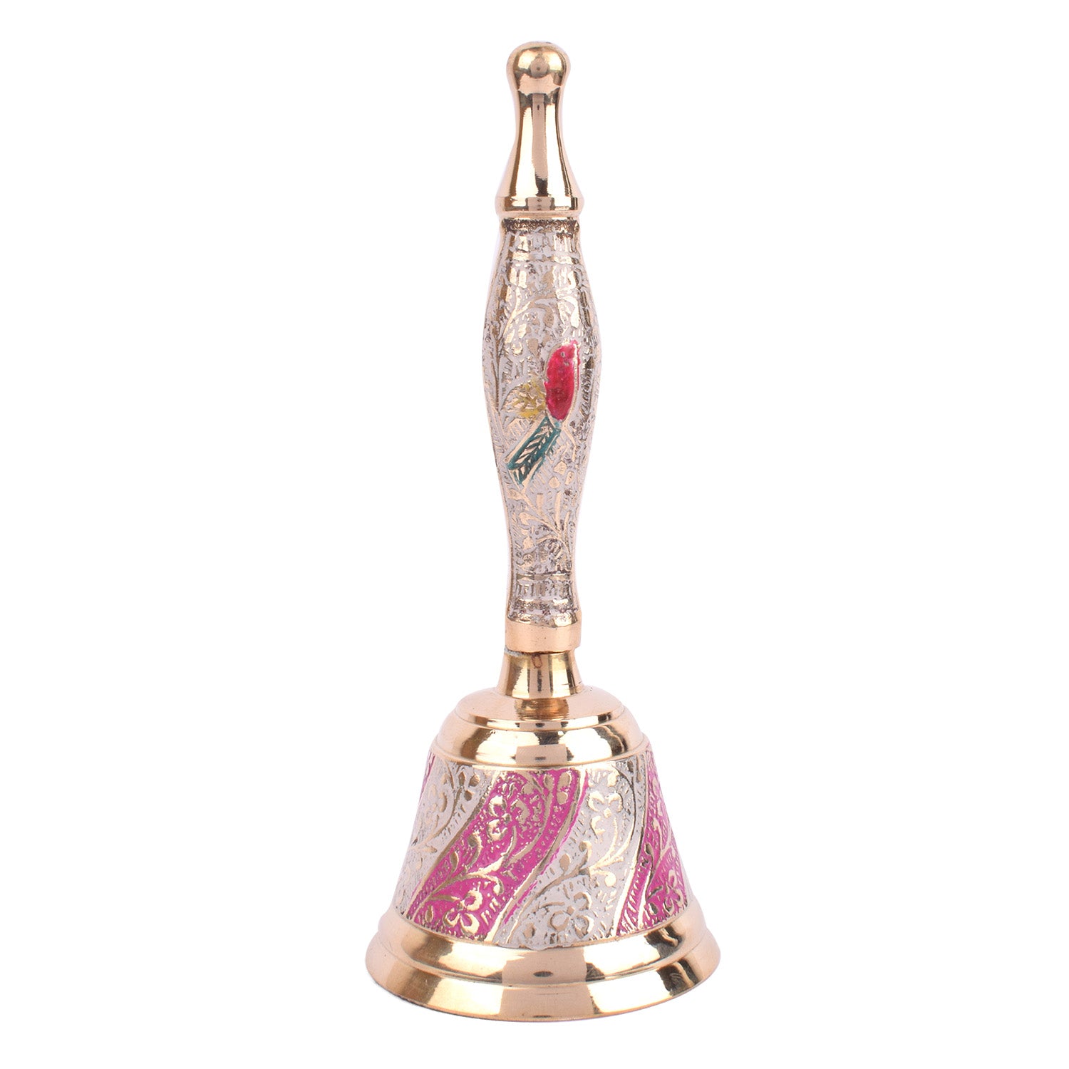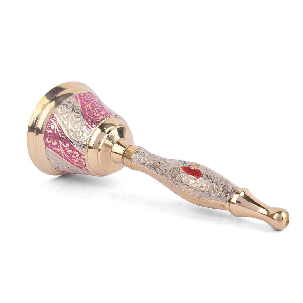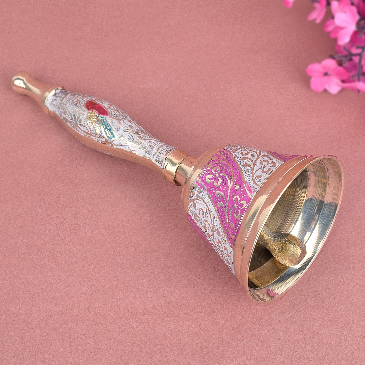 • Item Name: Handcrafted Brass Puja Bell (White & Pink)