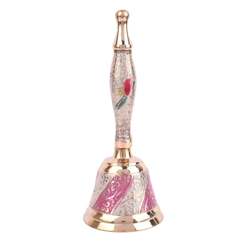 Buy Online Handcrafted Brass Puja Bell (White & Pink) | Satvikstore.in – satvikstore.in