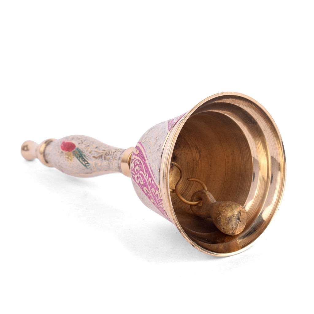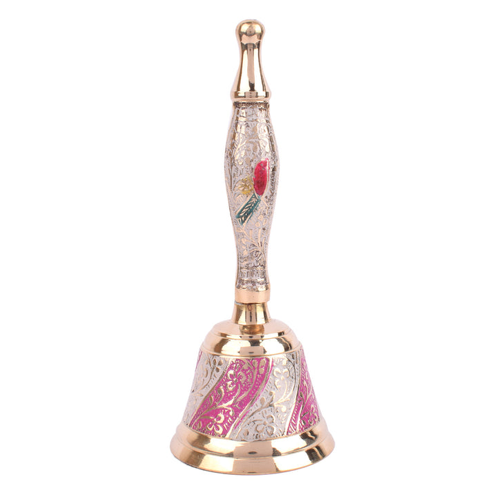 handcrafted brass puja bell | white and pink pooja bell | brass temple ghanti | traditional Indian prayer bell | artisanal aarti bell | devotional brass bell | decorative pooja accessories | handmade brass bell | spiritual puja item | brass bell for home mandir | Puja bell | Brass puja bell | Ghanti for temple | Hindu prayer bell | Aarti bell | Spiritual pooja bell | Temple bell |