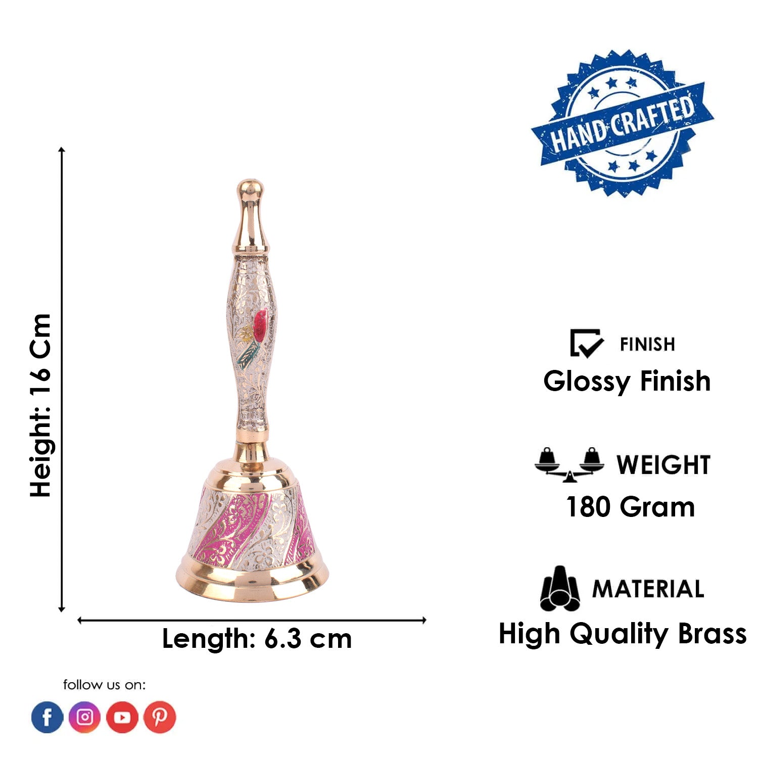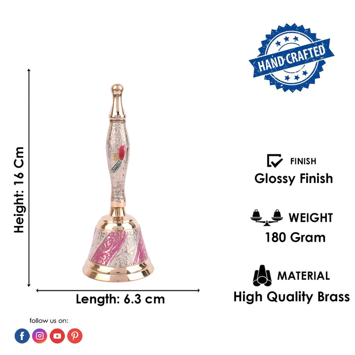 • About Product: Ringing bells are like a message to the whole world of a new day that starts with a visit to the temple/God making the start of the day- the best one. It is often called as Pooja bell or Ghanti. Handheld bells are held in the left hand and rung continuously while the various other Puja items are offered to God with the right hand. It is considered that the ringing bells ward off an evil spirit and is pleasant to God. Brass Pooja Bell is perfect to your home temple/aarti session and will have everyone mesmerized. The charming sound of this brass hand bell will reach out your prayers to the God and fill the atmosphere with divine sound and live music to the aarti during any Pooja/ceremony and also remove negative energy from your house/ office. Bring a shiny and beautifully crafted auspicious Pooja Bell Made up of Brass Material, Can Be Used for Worship At Home/Temple/Office, also an ideal gift for your loved one.