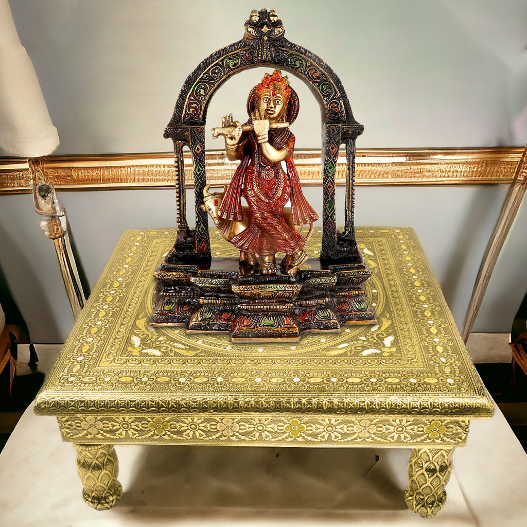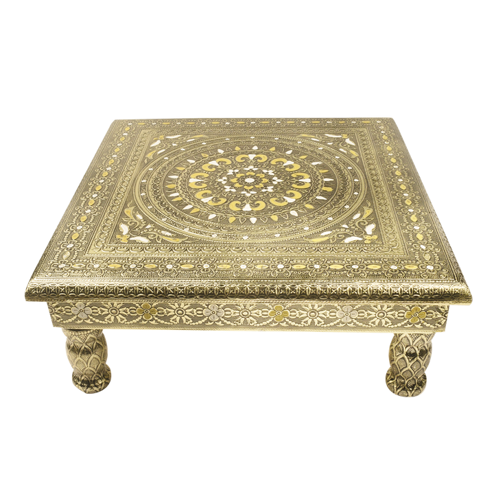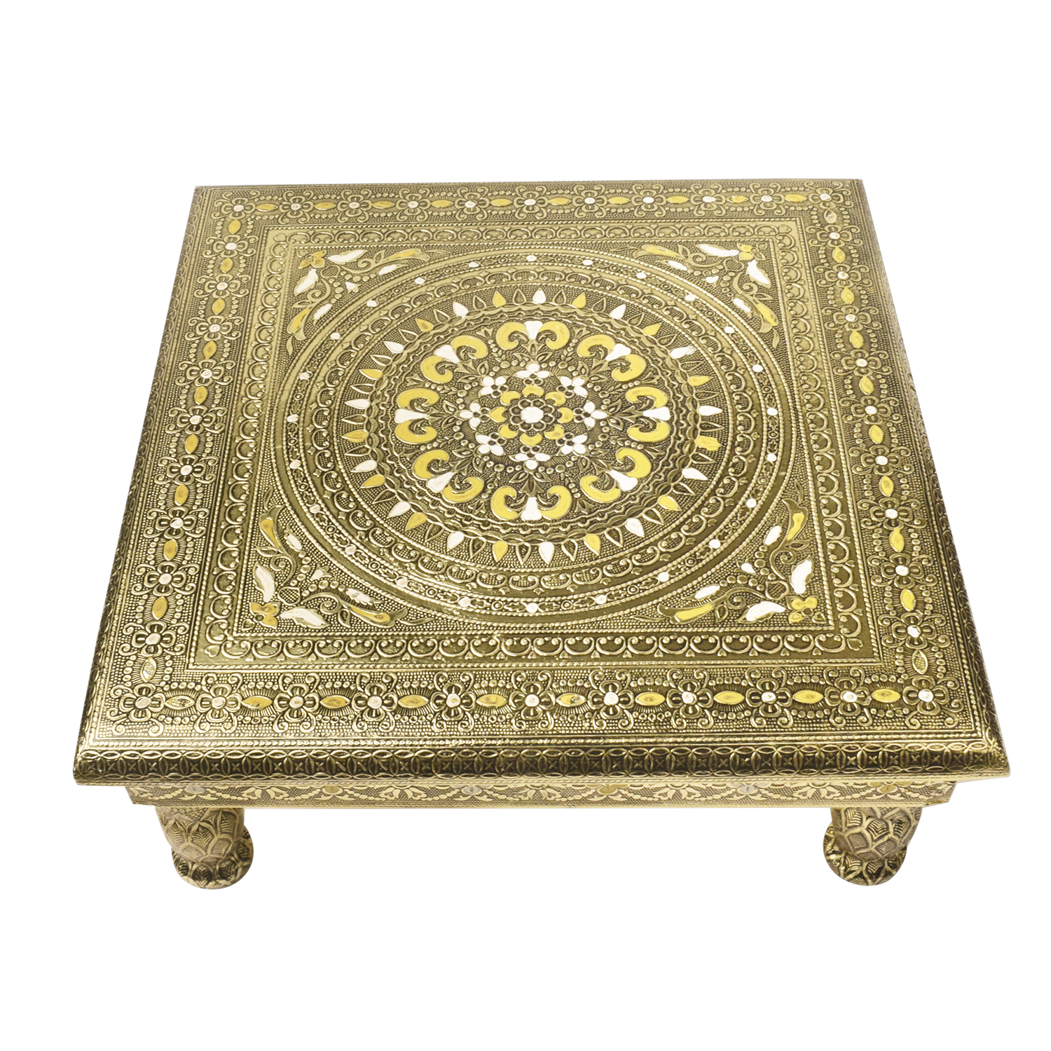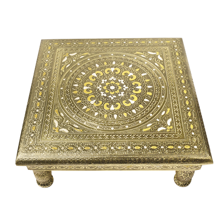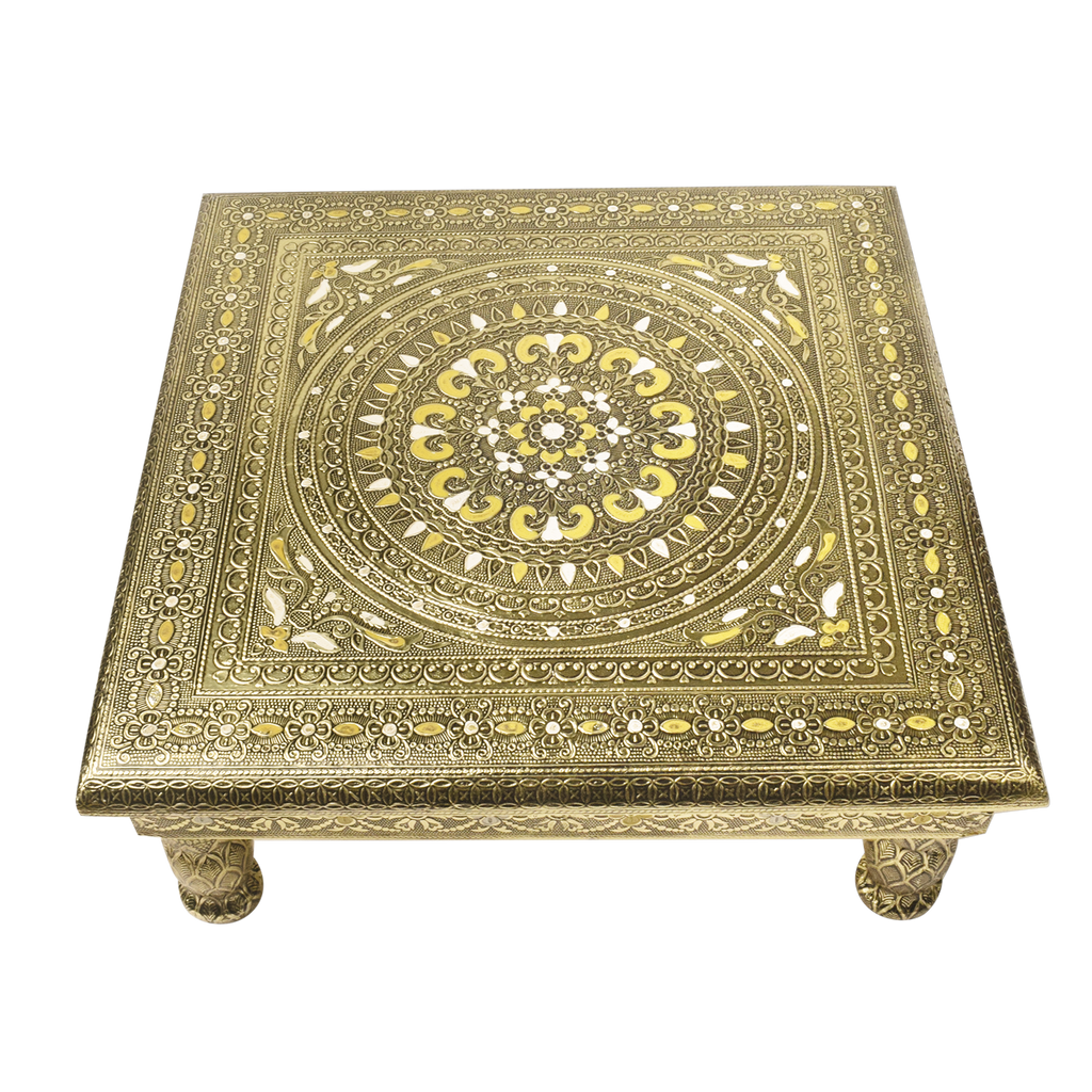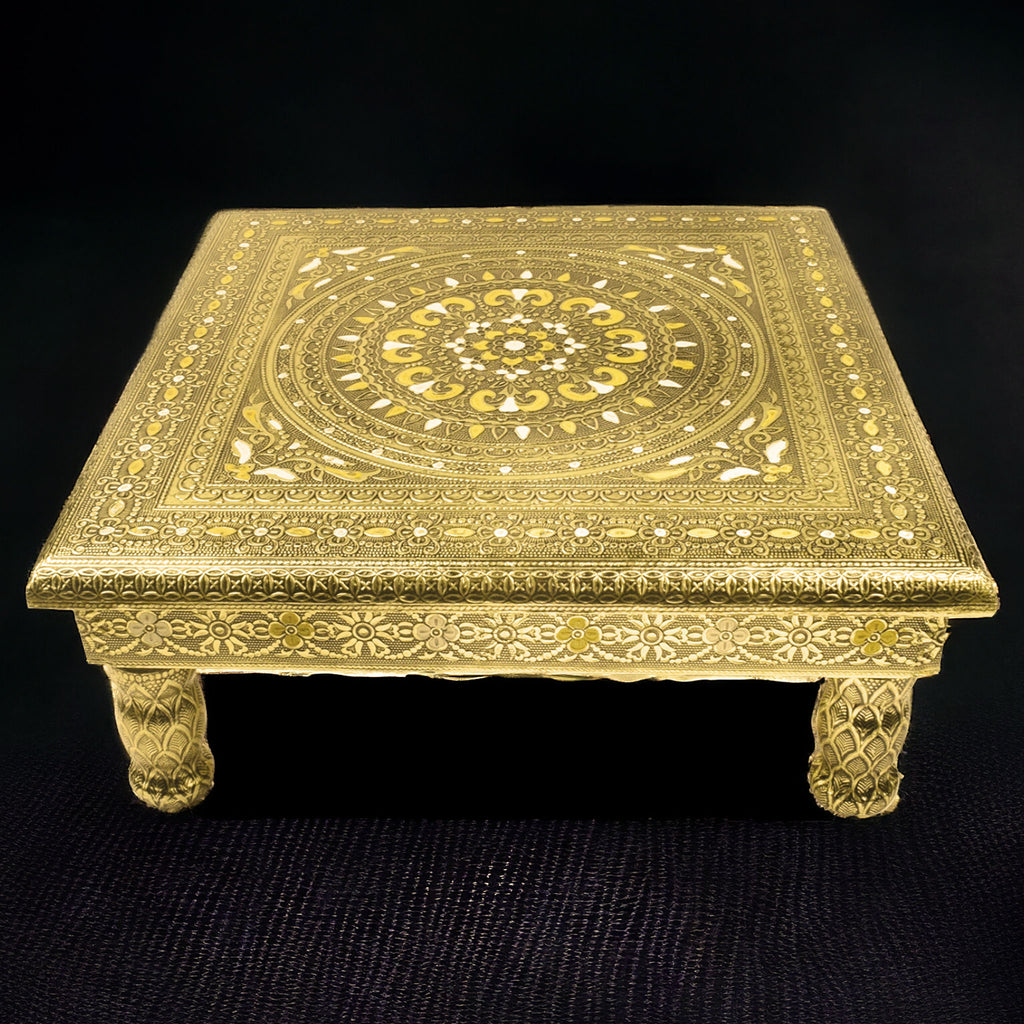 • Description:Β Crafted from high-quality wood, this decorative platform is adorned with vibrant Meenakari, an ancient art form that uses hand-applied enamel to create intricate and colorful patterns.The embossed patterns on the chowki make a statement of cultural elevation, offering a visual feast that harmonizes tradition and contemporary design. Its versatile use extends beyond religious ceremonies, making it a charming addition to your home decor.