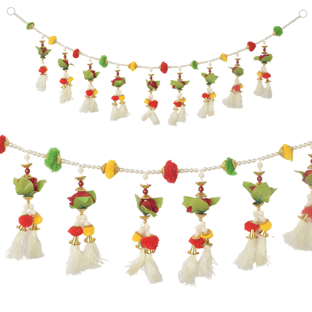 Buy Pom Poms Toran with Tassels & Flowers– Bandhanwar | Satvikstore.in – satvikstore.in