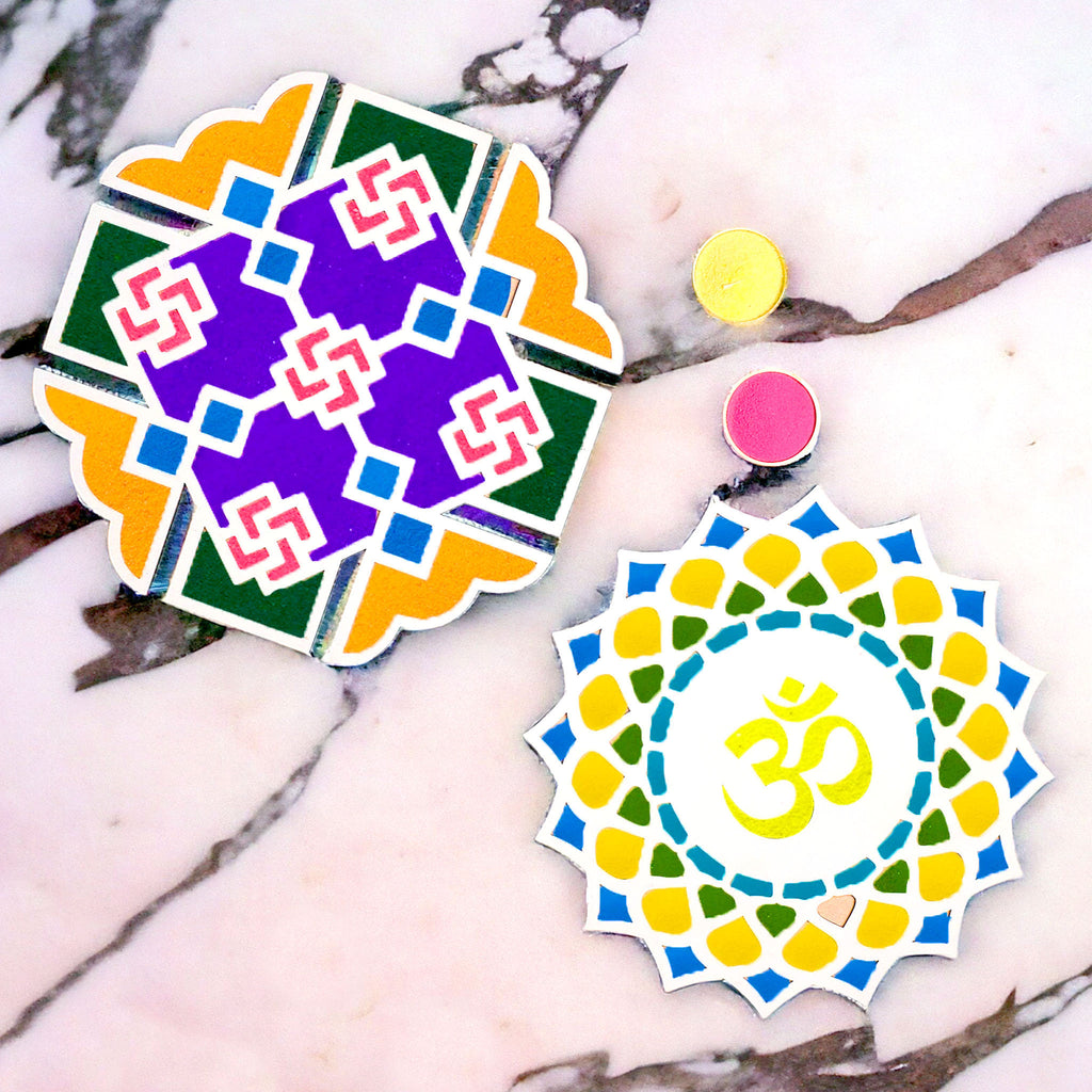 • Package Contain: Set of 2 Different Design Portable Rangoli Stencil with 5 rangoli pouches.