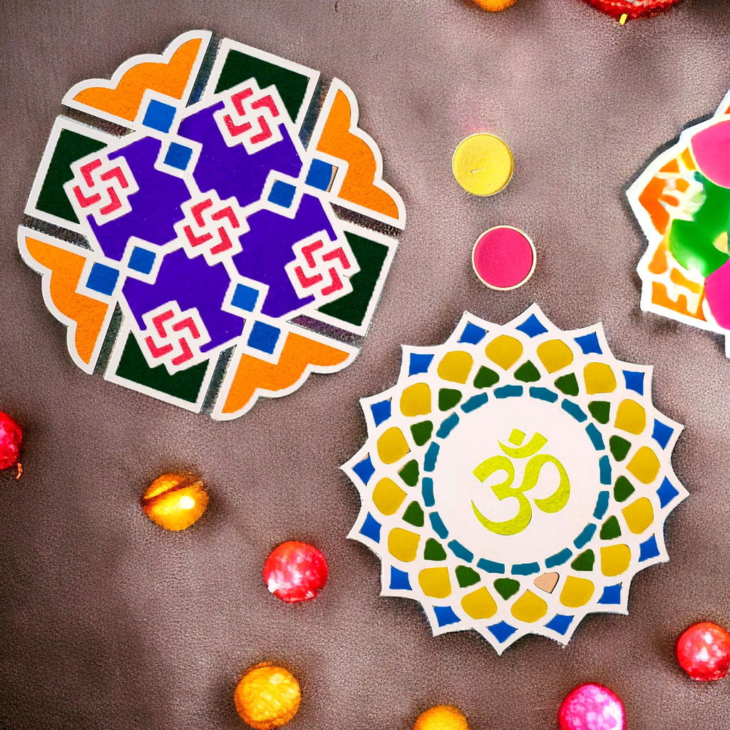 • Safe and Reusable: Made from non-toxic materials, our stencils are safe to use, and the mat is easy to clean and reuse for future celebrations. Decorate Any Surface: Not limited to just floors, you can also use our rangoli kit to decorate tables, countertops, or any flat surface to enhance the festive ambiance.