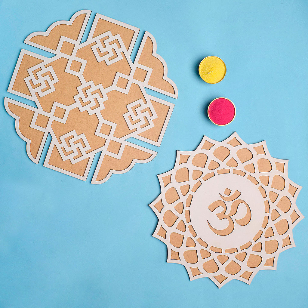 • Durable Materials: Crafted from wooden tools, the mat is built to last, ensuring you can use it for many Diwalis to come. Endless Design Possibilities: Explore an array of designs, from traditional kolam patterns to modern floral and border designs, with our versatile stencils.