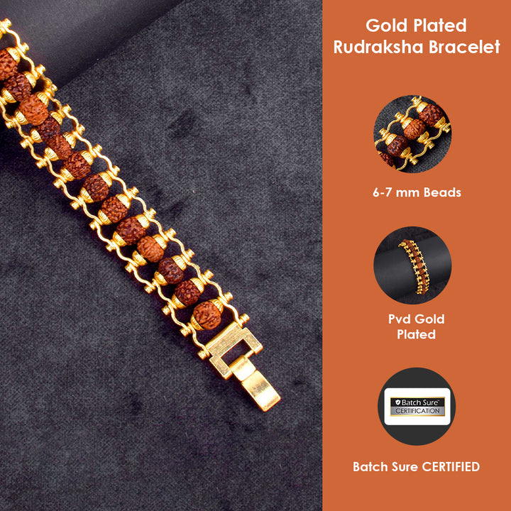 Gold Plated Rudraksha Bracelet | Premium PVD Coated Rudraksha | Spiritual Rudraksha Jewelry | Durable Gold Rudraksha Bracelet | Energized Rudraksha Wristwear | Protective Spiritual Bracelet | Traditional Rudraksha with Gold Finish | Unisex Rudraksha Bracelet | Genuine Rudraksha Beads Jewelry | Meditation Bracelet Gold Plated