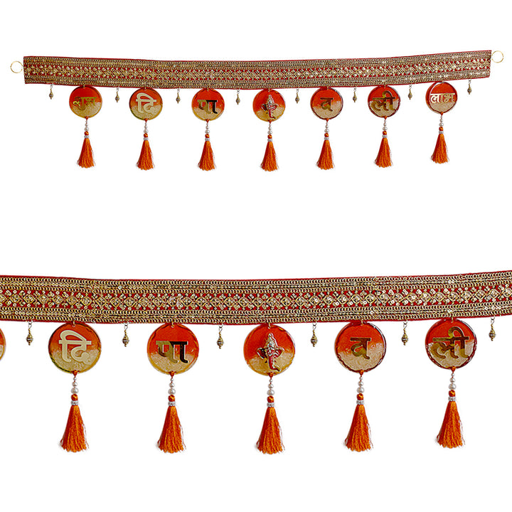 Add a distinctive spiritual touch to your doorway with this Resin Toran For Door Decoration (Two Shades). Handcrafted with dual-toned resin pieces—orange at the top and white at the bottom made of real rice grains—this toran brings out both beauty and auspicious energy. Paired with elegant goti and beads, it's perfect for enhancing any entrance during festivals or daily use.