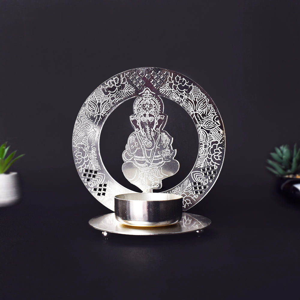 • Item Name: Silver Ganesh Tea Light Candle Holder