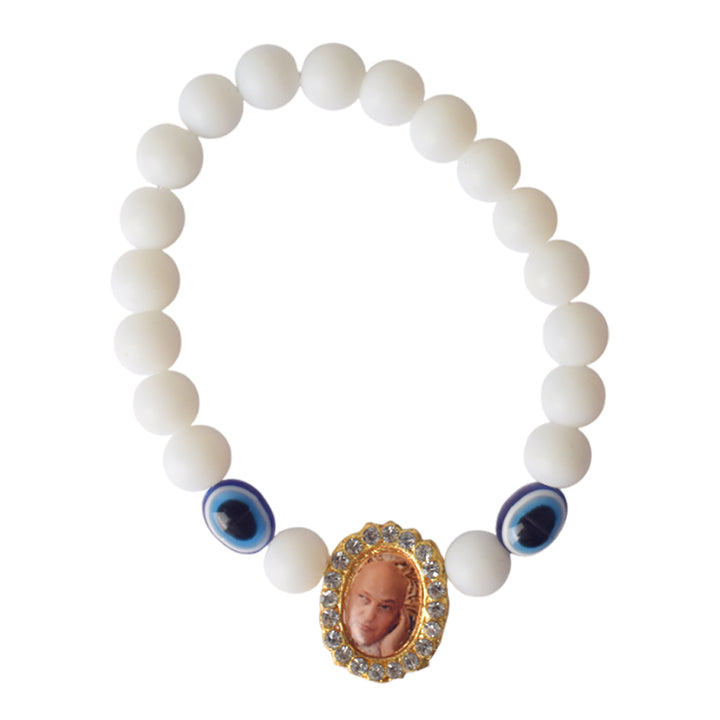 Buy Online | White Evil Eye Single Layer Guruji Swaroop Bracelet | satvikstore.in