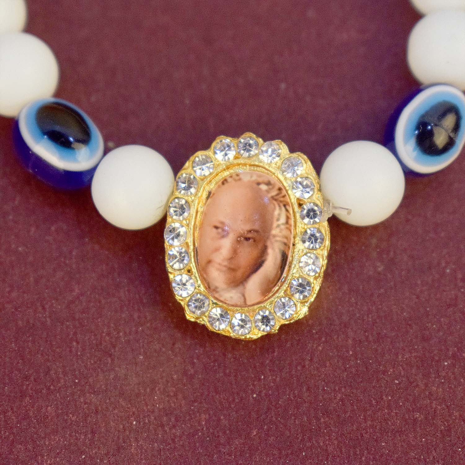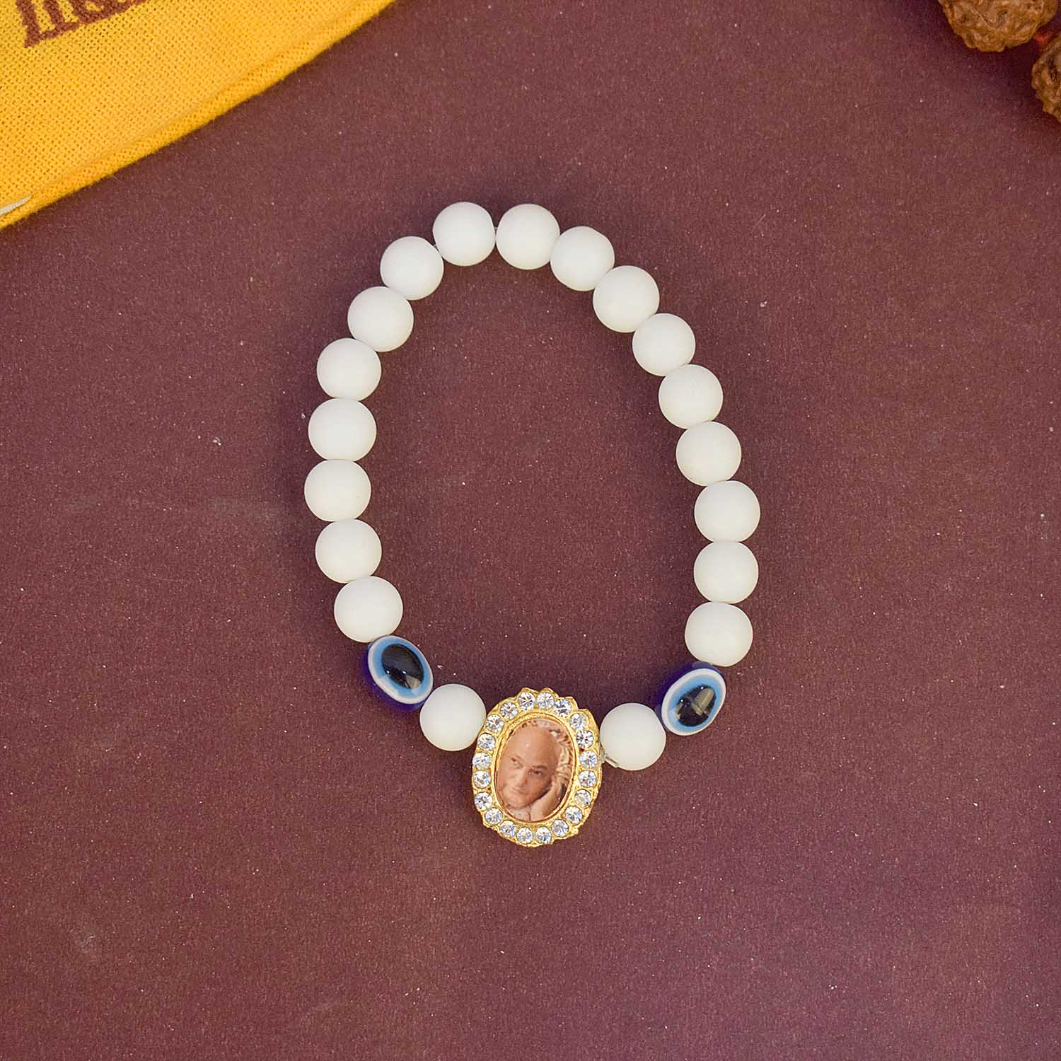 Item Name: White Beads with Evil Eye Single Layer Guruji Swaroop Bracelet