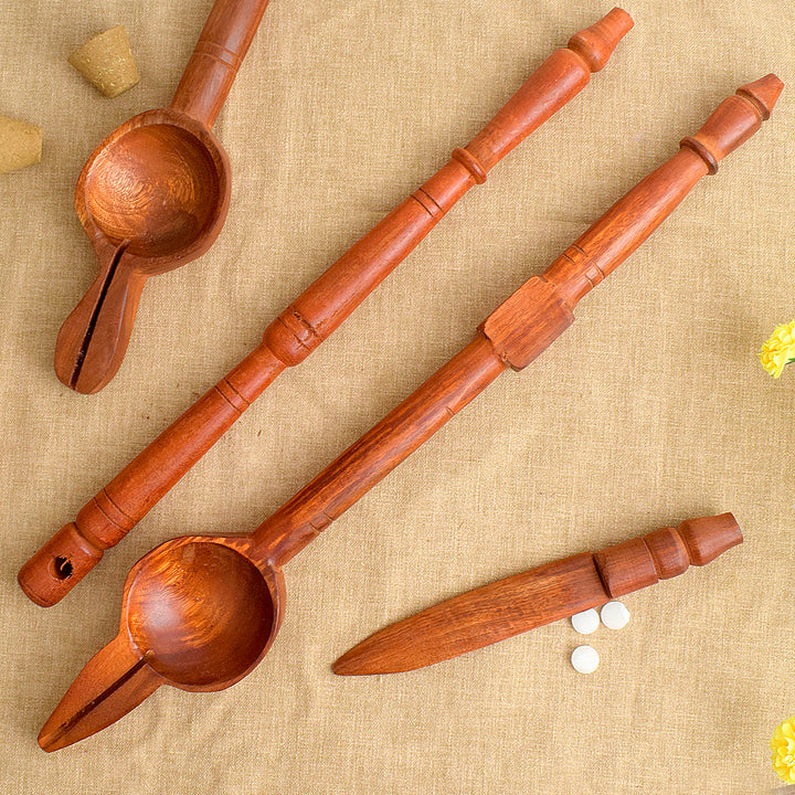 • Wooden Sruva (शर्वा) – Designed for offering liquids or liquid-based offerings.