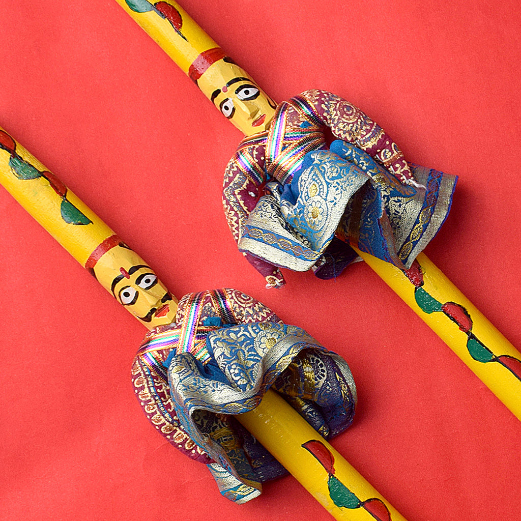 Dazzling Royals: Raja Rani Design Dandiya Sticks (1 Pair) – satvikstore.in