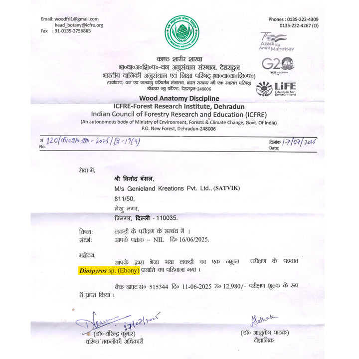 • Tested by : Authenticity certified by Central Wood Testing Laboratory The Rubber Board (Ministry of Commerce & Industry Govt. of India) and ICRE – Forest Research Institute, Dehradun – ensuring genuine Karungali wood quality.