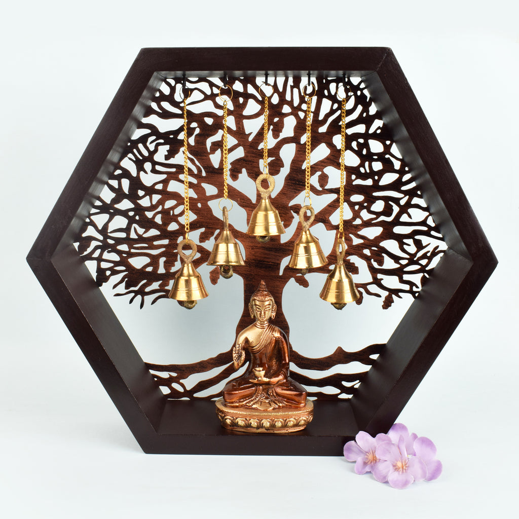 MDF Puja Mandir with Brass Bells No.2 – satvikstore.in