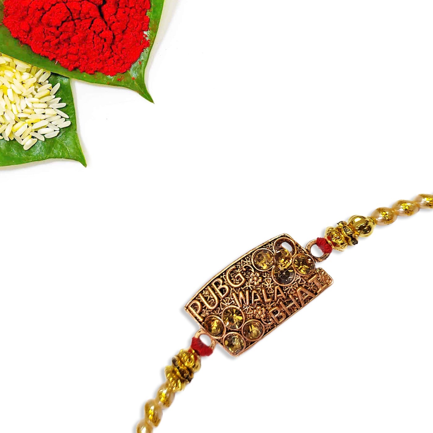 Beaded Rakhi: Adorned with intricate beads, our beaded rakhi collection exudes charm and elegance. Celebrate the joyous bond with your siblings as you tie these vibrant and delightful rakhis on their wrists.